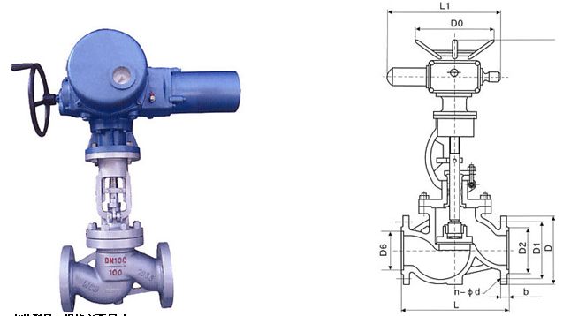 | 1.6MPa | DN | L | D | D1 | b | n-Φd | 電裝型號(hào) | L1 | H | D0 |